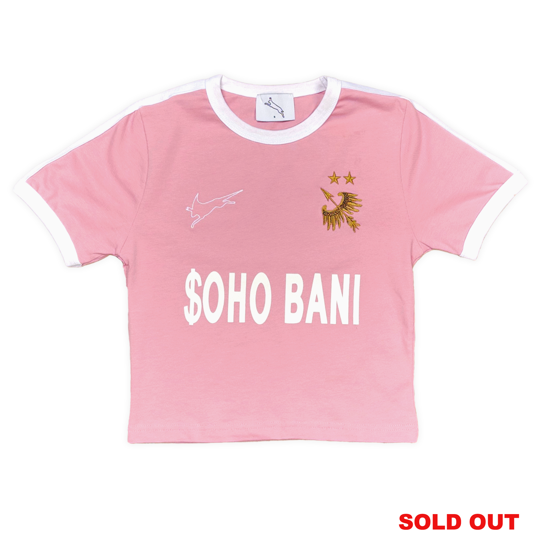 women, cropped, slim fit, rosa, front & back printed, 100% cotton, logos embroidered